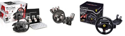 Y el último que me gustaría comentar es el volante Thrustmaster T500 RS, por la friolera de 499 EUR se vende como el volante oficial del Gran Turismo, 30cm. de diámetro + desmontable + palancas secuenciales auténticas + pedales con posiciones a elegir + 7Kg. de peso aproximado.