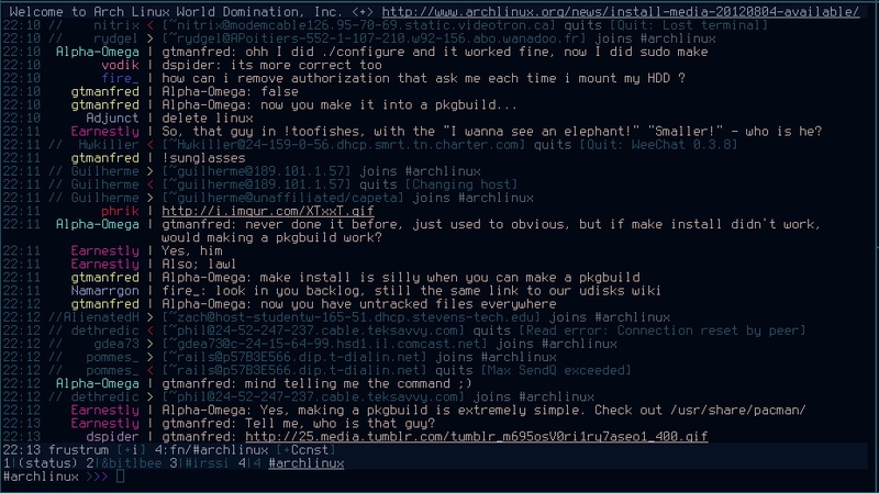 It's not quite known that some of us are still using irc as main channel for projects. I have to admit that without irc wouldn't have been able to talk with many interesting people, even lead developers in great opensource projects. So I've much to thank to that 'oldie' protocol.